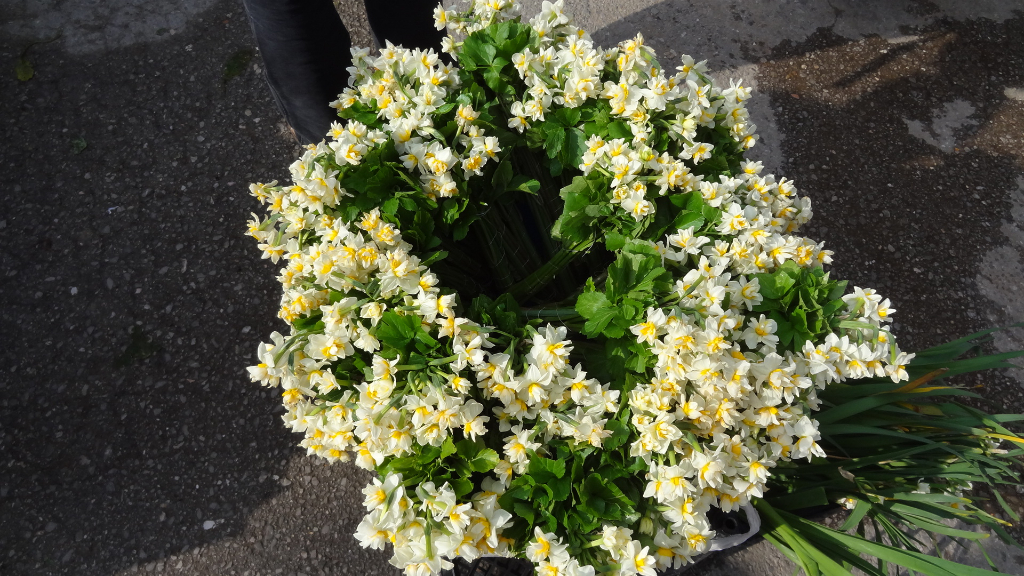 ich hab mir gerade den Narzissenstrauss angeschaut und bekam Fernweh. Hier ist Schmuddelwetter, Schneeregen, kühl nichts halbes und nichts ganzes….