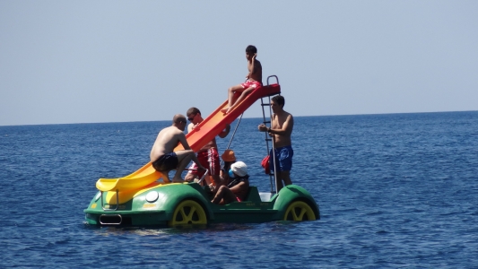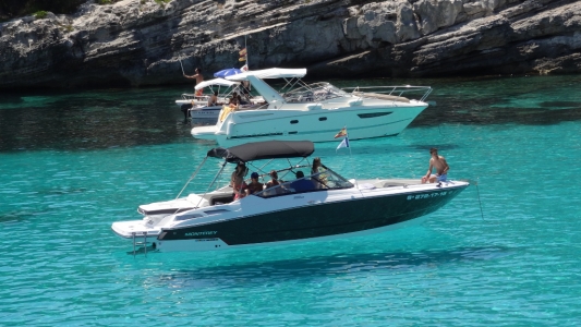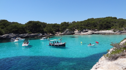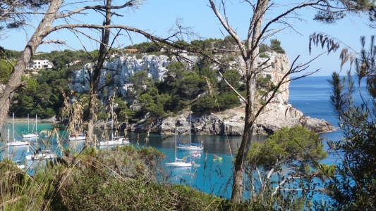 Cala Galdana – Menorca – Balearen / Am Morgen des 20. Juni brachen wir von Mahón auf. Es fiel uns schwer, denn Mahón hat uns gut gefallen, am Abend waren wir noch bei einem Konzert in der „Fischhalle“, der Liegeplatz war toll – mitten in der Stadt und doch ruhig – und nicht einmal teuer. Wir hätten es sicherlich noch einige Zeit hier ausgehalten. Aber irgendwie zieht es uns dann doch weiter. Die „Top-Ankerbucht“ von Menorca müssen wir doch besuchen, die gerade mal 9 Seemeilen entfernt ist. Also, Popo hoch, Leinen los und wieder hinaus aufs Meer. Draußen erwartete uns genügend Wind, um mit 7 Knoten Richtung Ankerbucht zu fahren, Segel nach einer Stunde wieder runter und rein in die Bucht. Huch ist die klein! Und proppenvoll! Mit Müh und Not kommen wir im Rückwärtsgang wieder raus und flüchten in die nächste Bucht, auch voll. Was tun? Ich habe Angst, dass wir nirgendwo mehr ankommen und das im Juni, wo doch die richtige Segelsaison noch gar nicht angefangen hat und jeder sagt, dass es ab Mitte Juli richtig voll wird. Wir segeln also weiter die Felsenküste entlang mit tollen Höhlen und wunderbarem türkisblauem glasklarem Wasser. Bis zur nächsten größeren Bucht sind es dann nochmals 9 Seemeilen und dort können wir um 16 Uhr den Anker fallen lassen. Dort stehen zwar einige größere Hotels, aber besser viel Platz zum Schwojen, als Angst zu haben, dass man anderen zu Nahe kommt. Wir springen ins Wasser und fühlen uns wie im Urlaub. Das Wetter ist warm aber angenehm, und wenn es zu warm wird, ein Sprung ins Wasser genügt. Am Abend kochen wir etwas und kommen seit langem wieder ins Reden und Erzählen. Obwohl wir uns im Urlaubsparadies Mittelmeer schon seit Monaten befinden, sind wir etwas enttäuscht. Wir haben uns das anders vorgestellt, jetzt wo das Wetter gut ist, beginnt natürlich die Segelsaion und damit sind die Buchten auch alle voll. Überall ist Ferienparadies (was niemand zu verdenken ist, denn alle wollen die Natur geniessen und bauen dort Häuser, Hotels und Campingplätze). Auch auf Mallorca, Ibiza, Formentera und der spanischen Küste wird es so weitergehen. Wir sind gedämpfter Stimmung. Könnt ihr euch das vorstellen? Nein sicherlich nicht, denn bei den Bildern muss es uns doch ganz prächtig gehen.
