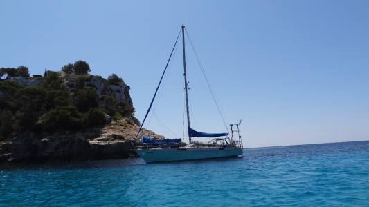 Am nächsten Tag wachen wir wieder bei schönstem Wetter und wenig Wind auf. Kaffeetrinken im Cockpit und weiter reden. Das was uns schon lange bedrückt, kommt nun zur Sprache: Das Mittelmeer war für uns beide die Spielwiese, ob es weitergeht oder nicht. Stephan und ich sind leider ganz unterschiedlicher Meinung: Stephan möchte weitermachen und seinen größten Traum erfüllen. Ich kann es nicht, denn die Ängste lassen mich nicht los – ja, sie werden sogar schlimmer mit jeder Fahrt, obwohl sie lange nicht mehr so anstrengend sind wie zu Beginn. Aber so kann ich nicht um die Welt segeln, denn ich werde zu einem anderen Menschen und bin nicht mehr frei. Die Entscheidung wird gefällt: Stephan wird sich ein Crewmitglied suchen, ich werde nach Hause fahren, sobald wir eine gute Marina auf Spaniens Festland gefunden haben. Im Moment ist alle Energie weg. Doch wir müssen ja weiter und das, wo es doch gerade in Sachen Landschaft und Wetter so schön ist und wir so eine lange Fahrt hinter uns haben. Ich habe lange gekämpft und dachte, ich könnte die Angst bezwingen, aber es funktioniert nicht. Stephan will weiter und weiter, am liebsten würde er lieber heute als morgen immer weiter fahren bis nach Usuhaia, Kap Horn. Er liebt das segeln und auf dem Meer sein, ich bin eher sehr verhalten und je mehr ich weiß, desto mehr Respekt habe ich davor.