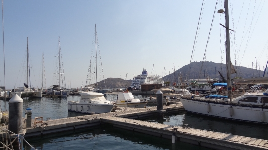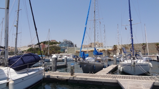 Stephan repariert so hier und da, erneuert Schläuche und Schalter, Schäkel. Wir haben unser Boot mal wieder geschrubbt und geputzt, es gibt einiges zu tun. Uns bleibt aber auch viel Zeit. Da wir meist erst spät nachts ins Bett gehen, denn erst da ist die Hitze erträglich, obwohl wir immer noch im Bikini im Cockpit sitzen, beginnt der Tag auch nicht so früh. Essen brauchen wir wenig, denn es ist tagsüber einfach zu heiß. Manchmal gehen wir in eine Tapabar und bestellen das Tagesmenü, 8 bis 10 Euro, das aus einer Vorspeise, Hauptspeise (z. B. Paella!), Nachtisch und einem Getränk besteht. Abends laden wir ab und zu einen Segelnachbar ein oder werden eingeladen. Es ist also immer was los und wir versuchen einfach mal loszulassen.