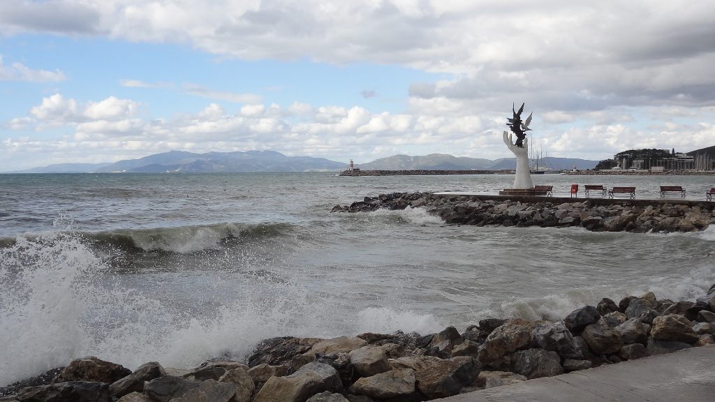 Die Küstenstraße ist jeden Morgen anders, Mal ist das Meer azurblau, dann wieder braun, dann grün. Die Farben wechseln wie die Wolken und das Wetter. Hier noch ein paar Impressionen.