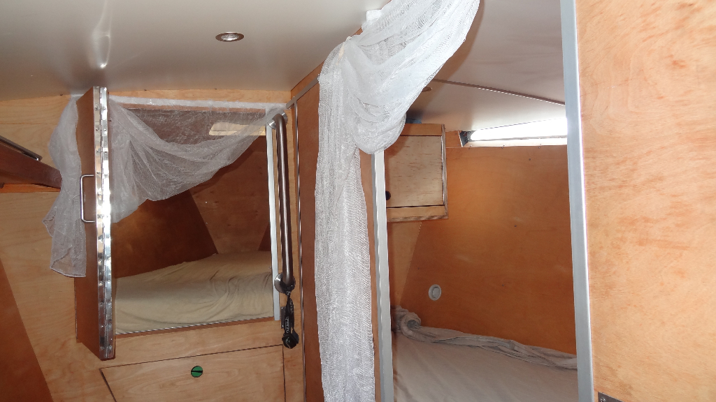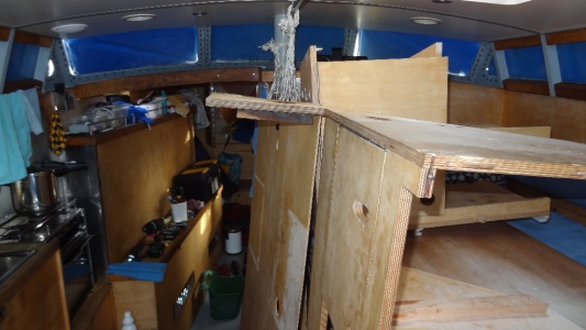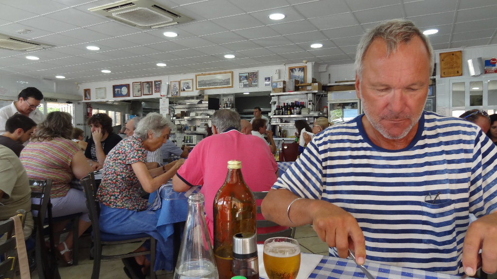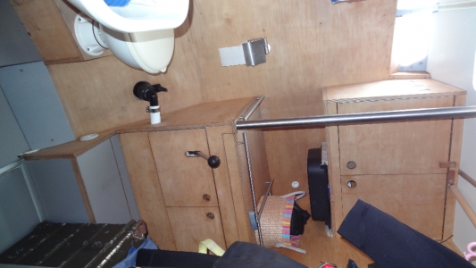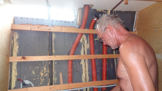 Am Dienstag waren wir dann damit beschäftigt, die Klopumpe zu reinigen und die Schläuche zu erneuern. Stephan baute alles wieder ein bis zum Abend. Doch das Ergebnis war mager. Nun pumpte die Klopumpe zwar, aber die alten Schläuche, die hinter der Badezimmerverkleidung waren, verstopfte die Klopumpe mit kleinen Urinsteinbröckeln. Ein weiteres langes Schlauchstück hinter der Verkleidung war ebenso betroffen. Am Mittwoch musste Stephan also in den sauren Apfel beißen. Die Verkleidung im Bad abmontieren samt den Schränken. So kommt er an die weiteren Schläuche ran, die auch erneuert werden mussten. Am Donnerstagmorgen ging es dann wieder weiter. Zuerst kaufte Stephan neue Schläuche, denn die alten konnten wir nicht mehr reinigen. Dann ging es an den Einbau, Stück für Stück schraubte Stephan nun wieder zusammen. Die Schläuche sind angebracht. Nun kommt der große Moment. Wird die Klopumpe wieder funktionieren? Hat er etwas falsch angeschlossen? Alles von vorn oder haben wir wieder eine gut funktionierende Toilette … Ja, es funktioniert. Es flutscht nur so. Nun darf ich wieder einmal das ganze Schiff zum Glänzen bringen, denn die Sauberkeit hat in den letzten Tagen arg gelitten. Dann darf Stephan erstmal die Dusche in der Marina besuchen, denn er arbeitet nackig und er stand während der Arbeit in einer Schweißlache, und sein wohlverdientes Bierchen trinken. Frieden kehrt wieder ein.