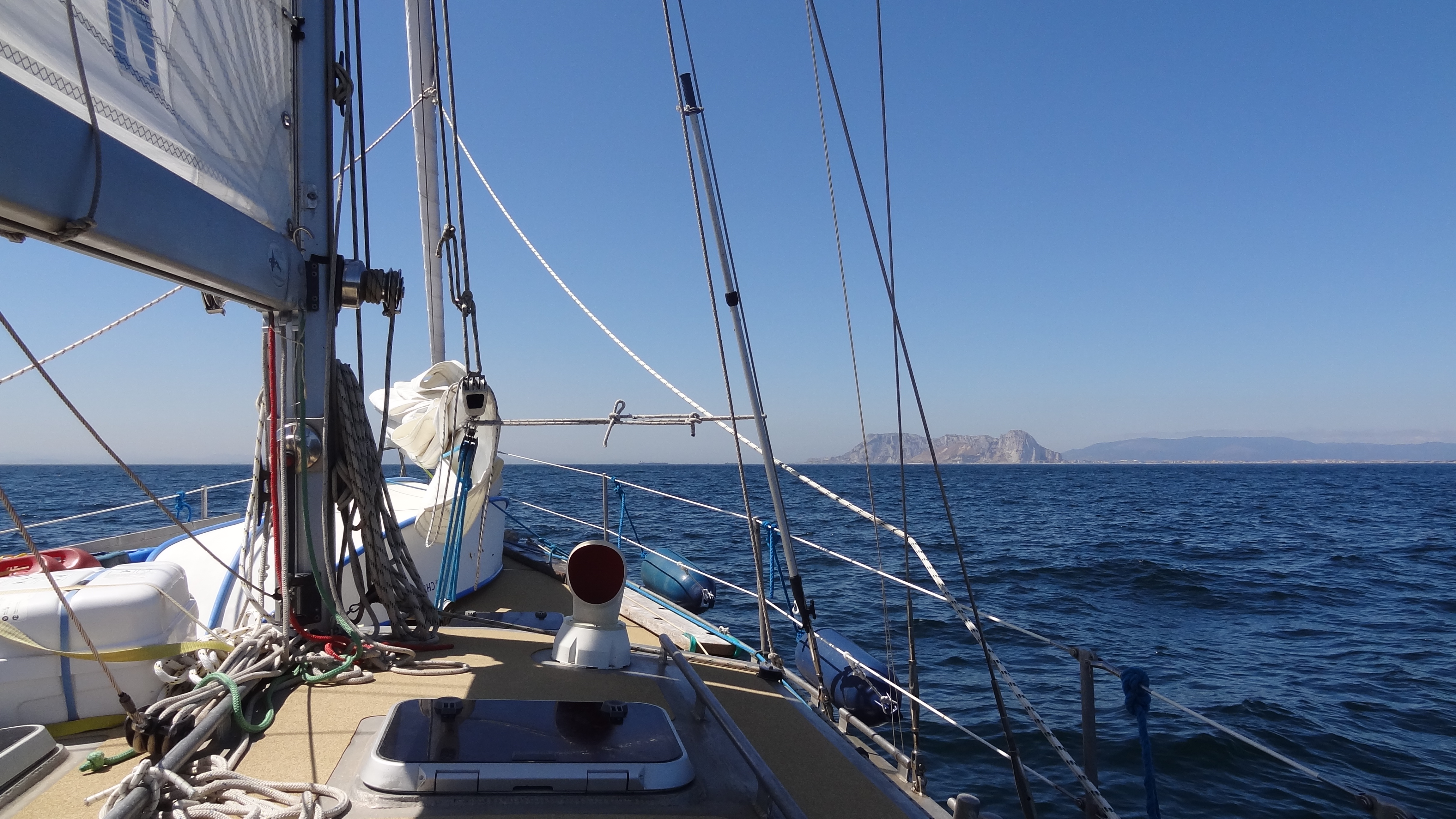 Der Wind kam leider immer genau aus der Richtung, in die wir fahren wollten. Die ersten Tage machten wir noch einen Mix aus Segeln und Motoren, dann sahen wir aber ein einigermaßen gutes Wetterfenster für die Fahrt durch die Straße von Gibraltar und entschlossen uns, notfalls auch die ganzen letzten ca. 100 verbleibenden Meilen bis Gibraltar durch zu motoren, auch wenn das für mich ziemlich ätzend ist.
