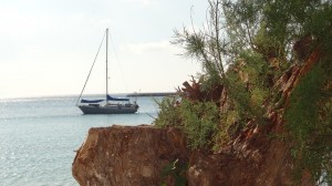 Griechenland – Samos – Pythagorion – Wir sind gestern in Griechenland auf der Insel Samos angekommen. Um 9:45 Uhr machten wir ganz unspektakulär die Leinenin Kusadasi in der Marina los, die Boatsmen sagten uns noch auf Wiedersehen und Öcsi und Susann warteten auf der Mole am Leuchtfeuer für ein Fotoshooting und Winken.