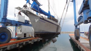 Kusadasi – Unter mir wird geschliffen, was das Zeug hält. Auch ansonsten ist es sehr aufregend hier in der Werft. Wir sind Punkt 9 Uhr heute Morgen aus dem Wasser gehoben worden. Die See ist spiegelglatt, es hat die ganze Nacht geregnet, nun scheint die Sonne – was wollen wir mehr.