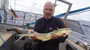 Zwischen Gibraltar und Madeira auf dem Atlanitk – 3. Tag auf Fahrt Richtung Madeira, oder ich fange an zu verrohen… …oder wie soll man das sonst deuten, wenn ich schon am frühen Morgen kurz nach dem Fang rohen Fisch zum Frühstück esse?