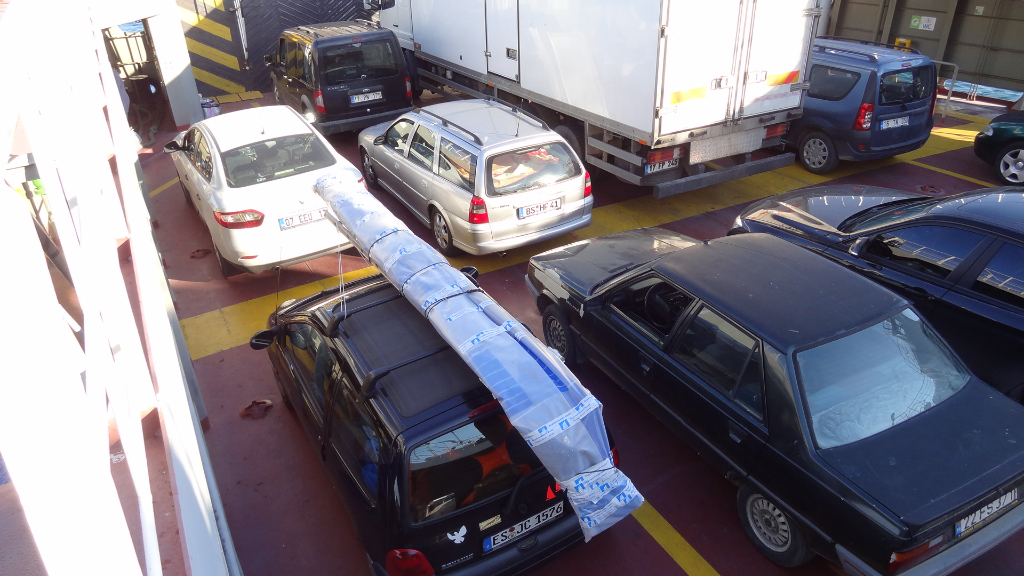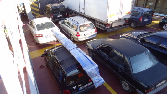 Kusadasi/Türkei – Angekommen! Die Anspannung fällt von uns. 32 Stunden sind wir von Samstagnachmittag bis Sonntagnacht um 24 Uhr nonstop gefahren. 2.800 km haben wir hinter uns. Unser Auto war voll beladen mit 4 Segeln (Groß, Schwedengroß, Fock und Genua), Antifouling, Solarzellen, Nähmaschine, gefühlte 40 kg Klamotten, Schuhe, 8 Flaschen Kessler-Sekt (für die Äquator-Taufe und sonstige Feierlichkeiten), Müsli, jede Menge Schokolade von lieben Kolleginnen und Segelbücher. Unser kleines Auto schnurrte die Kilometer nur so runter, mehr als 100 km/h konnten wir sowieso nicht fahren. Die Autobahn wurde gegen Abend immer leerer, durch Österreich, Slowenien, Kroatien und dann Serbien bei Nacht fuhren wir fast allein, in Bulgarien dämmerte es, aber auch hier war wenig Verkehr. Um 12 Uhr Nachmittags standen wir am Sonntag an der türkischen Grenze. Aber auch hier hatten wir – außer dass wir einmal den Kofferraum aufmachen mussten, keine Probleme. Und wie es mal so ist, wenn man eine Reise macht, gibt es schöne und weniger schöne Erlebnisse.